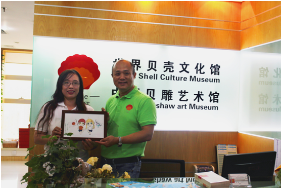貝殼紅也為前來參觀的中山大學新華學院雕情貝藝社會實踐隊的老師及隊員準備了禮物……