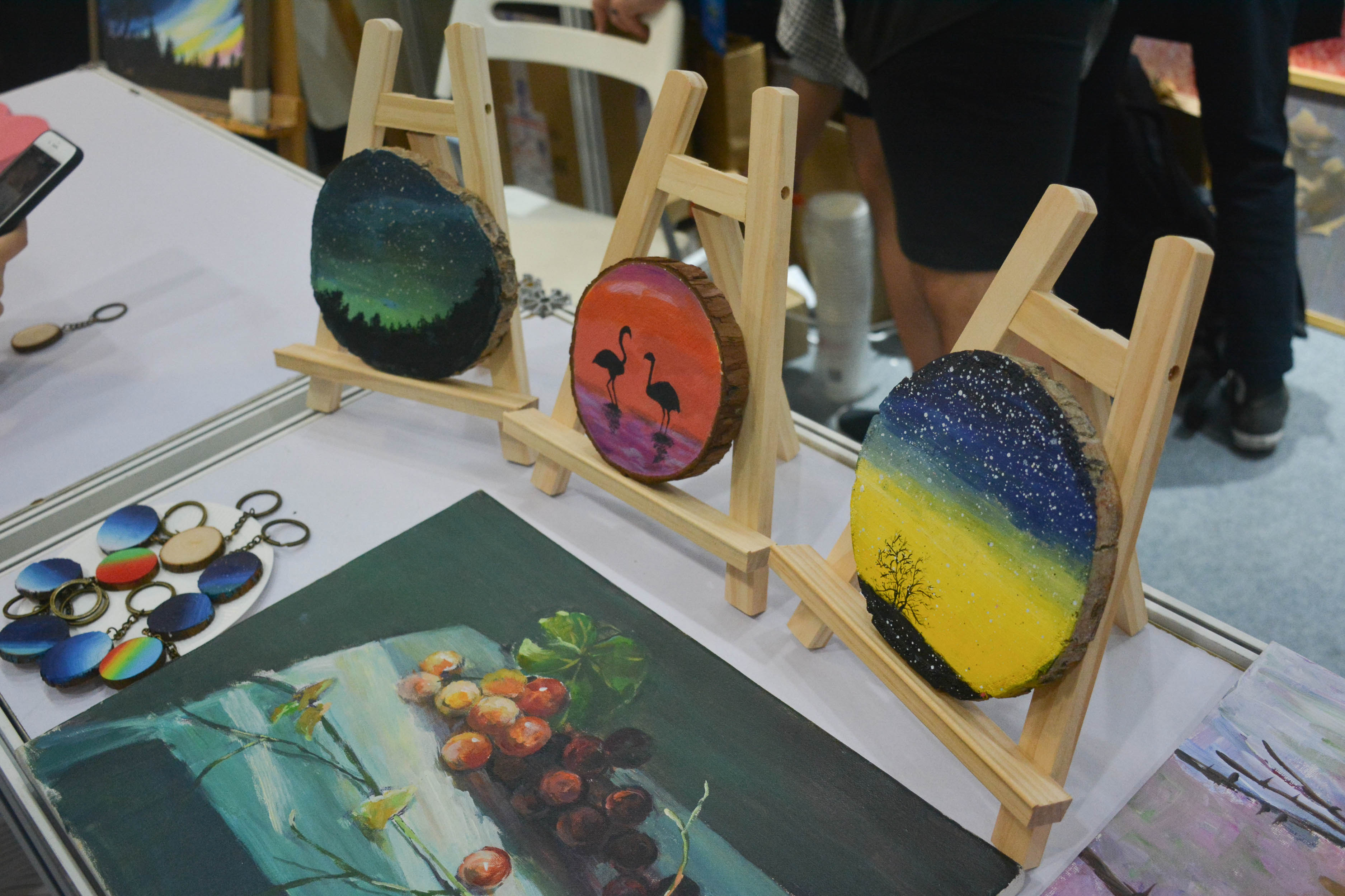 在手工活動體驗區(qū),現(xiàn)場觀眾可以DIY陶器、丙烯畫和皮具等,趣味十足。