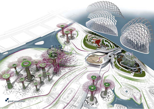 Gardens by the Bay項目是新加坡海濱發(fā)展景觀項目,由國家支持。新加坡國家公園局和來自英國的景觀事務(wù)所Grant Associates通力合作完成。這個工程也是世界上很大的景觀工程之一,101公頃的面積包含三個不同的花園:南灣,東灣,中灣。在展現(xiàn)園林藝術(shù)同時,為本地和國際游客提供一個美好的去處,并極大的提升新加坡的國際形象。