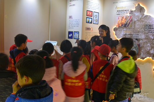 孩子們在門口有序集合,安靜地等候貝殼紅講解員講解。