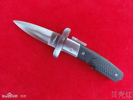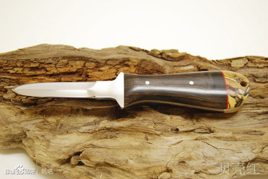 David Ponson按照同樣的設(shè)計原理制作的另一款折疊牡蠣刀以厚度3毫米的RWL34高碳鋼制作刀片,刀封閉的長度同為10厘米,展開的總長度為17厘米。同時還加了鋼片護(hù)手,如果用力過度,開蠔刀滑落,可以保護(hù)你的手的安全。