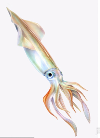 當槍烏賊快速運動時,海水經(jīng)過尾部環(huán)進入外套膜,然后再由軟骨將尾部環(huán)形孔關閉。當它們需要快速前進時,就會收縮腹肌,進而壓迫外套膜,將海水從位于腹部的漏斗中噴射出來,以此形成強大的推動力,這樣槍烏賊就能夠飛速前進了。