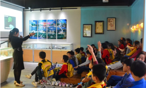除了對展示的貝殼標(biāo)本進行介紹,講解員還結(jié)合日常生活中一些現(xiàn)象介紹人類利用貝類的歷史及發(fā)展,小朋友們知識積累都很豐富,基本都知道以前貝殼是作為貨幣使用的,甚至還有的小朋友還知道什么叫做物物交換……
