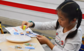 參觀活動后面的環(huán)節(jié)是DIY,盡管非常好奇,但小朋友都能夠保持安靜,聽工作人員介紹完步驟之后再動手。
