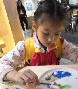 在DIY貝殼工藝品的過程中,小朋友們都積極參與,獨立制作,遇到解決不了的問題才尋求幫助,這不僅能夠讓小朋友們在親身實踐中了解到貝雕藝人制作貝雕工藝品的不易,更有利于促進培養(yǎng)他們的藝術(shù)審美及獨立能力,提升實踐技能。