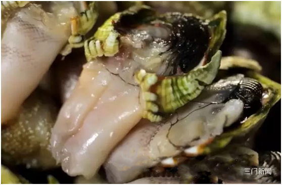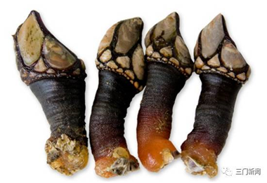 “鵝頸藤壺”又名“佛手螺”、“觀音手”,又名“狗爪螺”、“海雞腳”,有“來自地獄的海鮮”之稱。它主要生活在海流交換較為頻繁的島嶼礁石縫隙里,它的生長環(huán)境對水質(zhì)要求很高,生長緩慢,微量元素含量較高,味道鮮甜。因?yàn)椴荒莛B(yǎng)殖,是野生的,所以價(jià)格偏高。