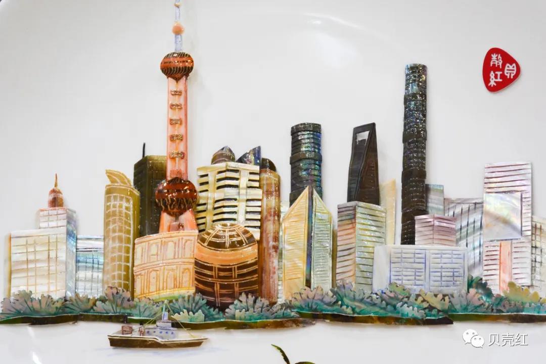 貝殼紅貝雕《陸家嘴看行船忙》,以多種珍貴貝殼為原料,精心雕琢,展現(xiàn)陸家嘴高樓林立之繁華,透過貝雕,一睹“魔都”風(fēng)采。